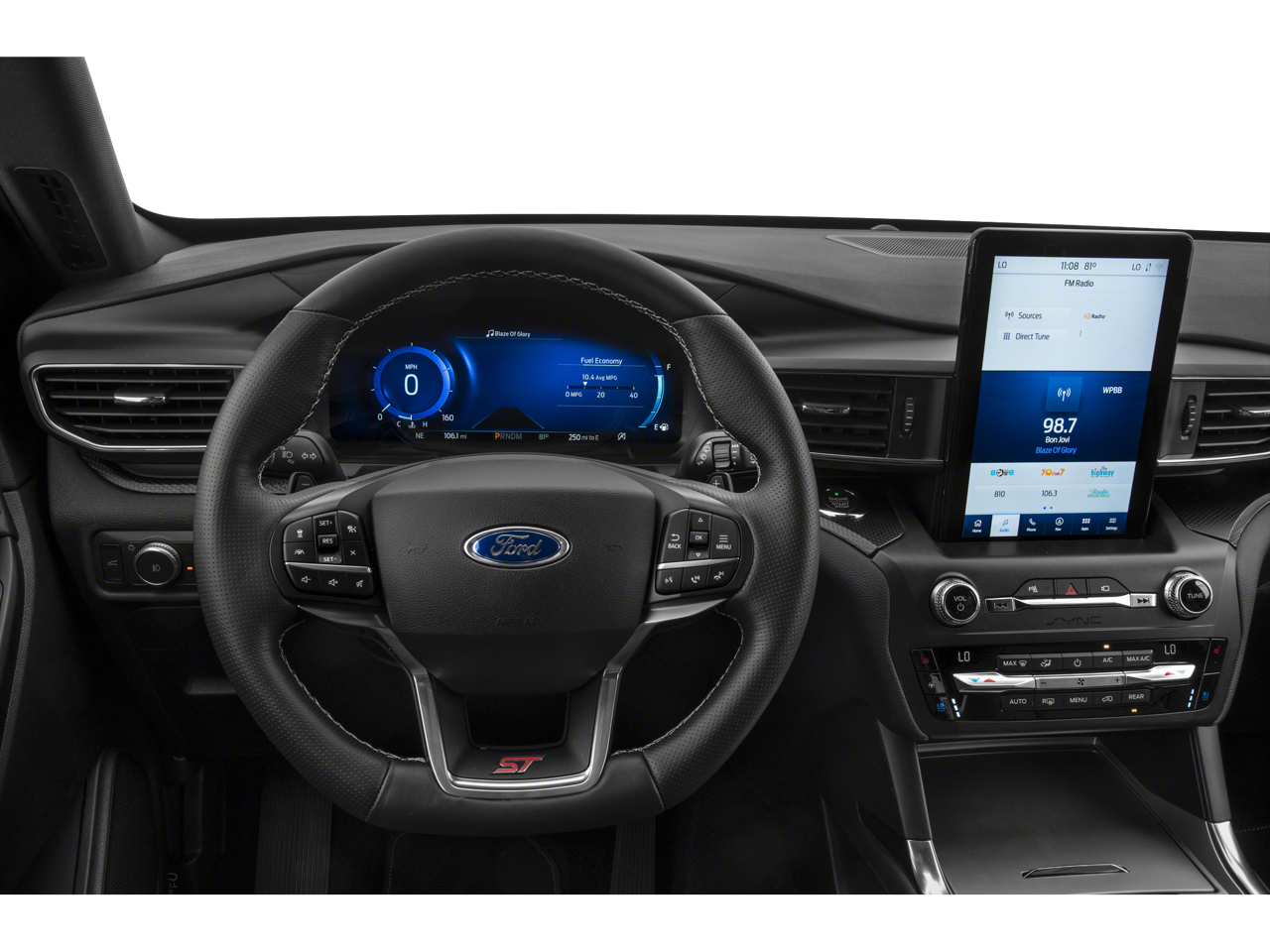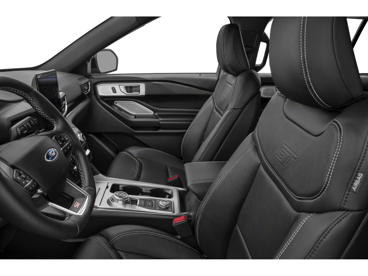 This car is well equipped with the following features: Equipment Group 401A, Ford Co-Pilot360 Assist+ (Evasive Steering Assist, Intelligent Adaptive Cruise Control, and Speed Sign Recognition), Premium Technology Package (10.1 LCD Capacitive Portrait Touchscreen, 2 Additional Speakers, and Leather Htd/Ventilated Sport Captain's Chairs), ST High Package (110V/150W AC Power Outlet, 360-Degree Camera w/Split View, Active Park Assist 2.0, Auto-Dimming Rearview Mirror (Interior), FordPass Connect, Forward Sensing System, Front Rain-Sensing Wipers, Hands-Free Foot-Activated Liftgate, Memory Driver's Seat, Power Tilt/Telescoping Steering Column, Radio: B&O Sound System by Bang & Olufsen, Reverse Brake Assist, Second Row Heated Seats, Sideview Mirrors w/Gloss Black Caps, SYNC 3 Communications & Entertainment System, Third Row PowerFold (Folds Flat), Universal Garage Door Opener (UGDO), Voice-Activated Touchscreen Navigation System, and Wireless Charging Pad), ST Street Pack (Performance Front & Rear Brakes and Wheels: 21 Aluminum), 20 Machined Aluminum w/Painted Pockets Wheels, 3.58 Non-Limited-Slip Rear Axle Ratio, 3rd row seats: bench, 4-Wheel Disc Brakes, 6 Speakers, ABS brakes, Air Conditioning, Alloy wheels, AM/FM radio: SiriusXM, AM/FM Stereo, Auto High-beam Headlights, Automatic temperature control, Black Roof-Rack Side Rails, Brake assist, Bumpers: body-color, Compass, Delay-off headlights, Driver door bin, Driver vanity mirror, Dual front impact airbags, Dual front side impact airbags, Electronic Stability Control, Emergency communication system: SYNC 3 911 Assist, Exterior Parking Camera Rear, Four wheel independent suspension, Front & Second Row Floor Liners (16B), Front anti-roll bar, Front Bucket Seats, Front Center Armrest, Front dual zone A/C, Front fog lights, Front reading lights, Fully automatic headlights, Heated door mirrors, Heated front seats, Heated steering wheel, Illuminated entry, Knee airbag, Leather steering wheel, Low tire pressure warning, Occupant sensing airbag, Outside temperature display, Overhead airbag, Overhead console, Panic alarm, Passenger door bin, Passenger vanity mirror, Power door mirrors, Power driver seat, Power Liftgate, Power passenger seat, Power steering, Power windows, Rear air conditioning, Rear anti-roll bar, Rear reading lights, Rear window defroster, Rear window wiper, Remote keyless entry, Security system, SelectShift Capability w/Paddle Shifters, Speed control, Speed-sensing steering, Speed-Sensitive Wipers, Split folding rear seat, Spoiler, Sport steering wheel, Steering wheel mounted audio controls, SYNC 3/Apple CarPlay/Android Auto, Tachometer, Telescoping steering wheel, Tilt steering wheel, Traction control, Trip computer, Twin Panel Moonroof, and Variably intermittent wipers.
