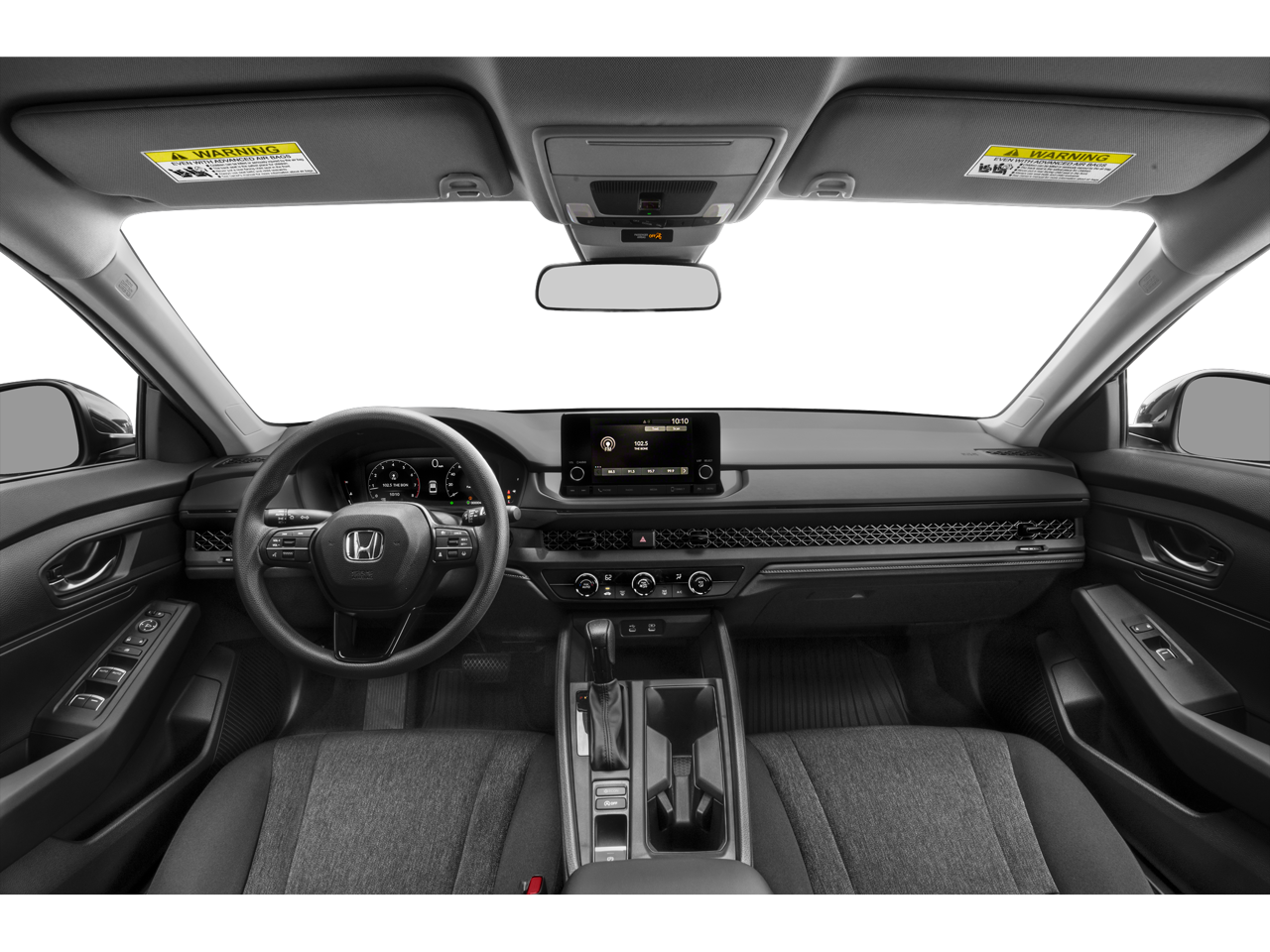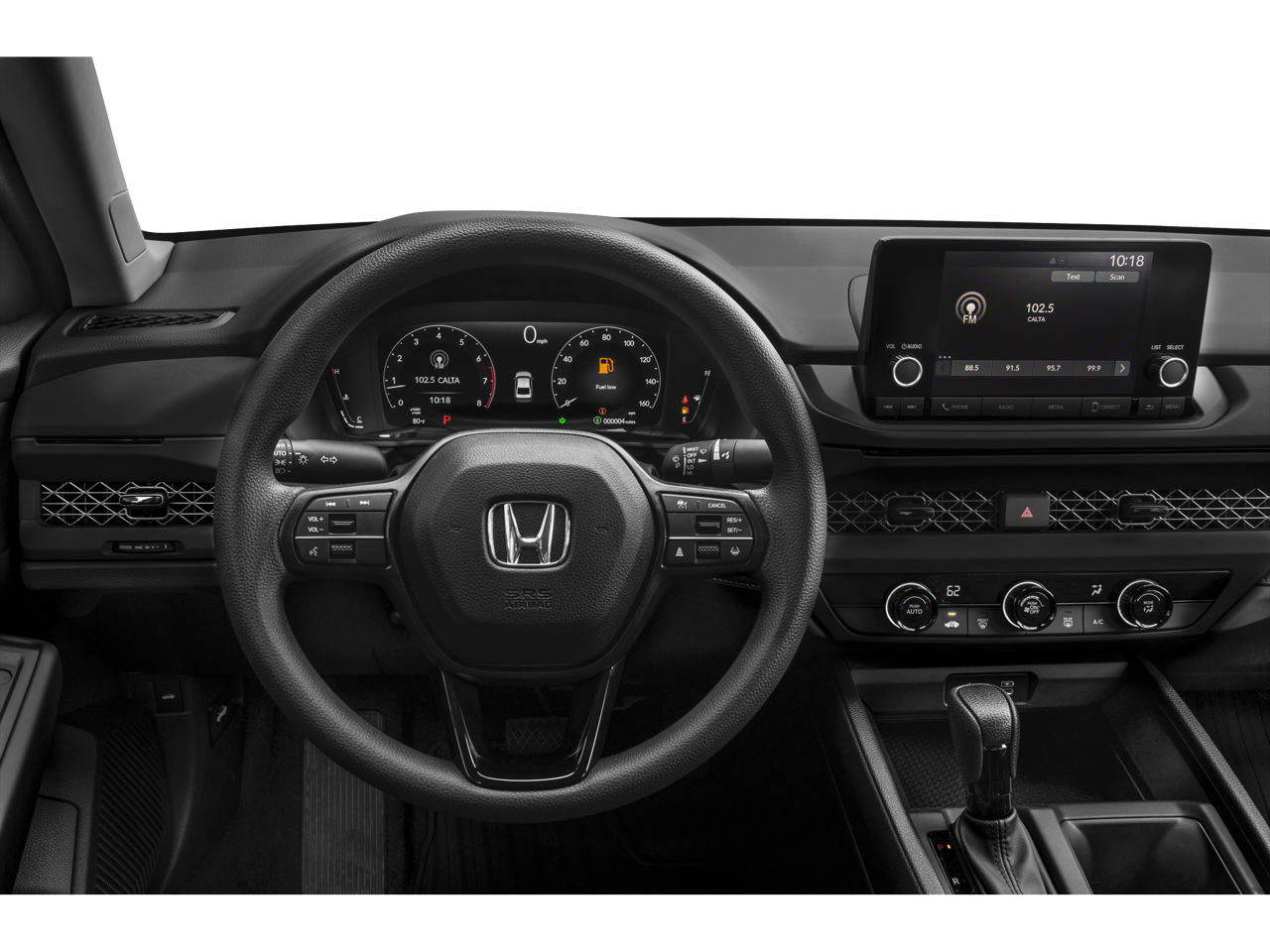 This car is well equipped with the following features: 4 Speakers, 4-Wheel Disc Brakes, ABS brakes, Adaptive Cruise Control: Adaptive Cruise Control (ACC) with Low-Speed Follow, Air Conditioning, Alloy wheels, AM/FM radio, Apple CarPlay/Android Auto, Auto High-beam Headlights, Automatic temperature control, Brake assist, Bumpers: body-color, Compass, Delay-off headlights, Driver door bin, Driver vanity mirror, Dual front impact airbags, Dual front side impact airbags, Electronic Stability Control, Emergency communication system: HondaLink Assist, Exterior Parking Camera Rear, Fabric Seat Trim, Four wheel independent suspension, Front anti-roll bar, Front Bucket Seats, Front Center Armrest, Front reading lights, Fully automatic headlights, Illuminated entry, Knee airbag, Lane departure: Lane Keeping Assist System (LKAS) active, Low tire pressure warning, Occupant sensing airbag, Outside temperature display, Overhead airbag, Overhead console, Panic alarm, Passenger door bin, Passenger vanity mirror, Power door mirrors, Power steering, Power windows, Radio data system, Radio: 160-Watt AM/FM Audio System, Rear anti-roll bar, Rear reading lights, Rear seat center armrest, Rear side impact airbag, Rear window defroster, Remote keyless entry, Security system, Speed control, Speed-sensing steering, Speed-Sensitive Wipers, Steering wheel mounted audio controls, Tachometer, Telescoping steering wheel, Tilt steering wheel, Traction control, Trip computer, Variably intermittent wipers, and Wheels: 17 x 7.5 Blade Silver.